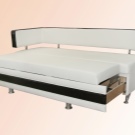الميزة الرئيسية لهذه الأريكة هي صغر حجمها. عند طيها ، لا تشغل هذه الأريكة مساحة تقريبًا. لكن له عيوب أكثر من الإصدار السابق. نظرًا لأنه يتكون من ثلاث كتل منفصلة ، فمن غير المرجح أن يكون سطح سريرك مسطحًا..