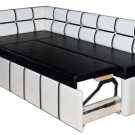 أيضًا ، غالبًا ما يستخدم هذا النظام ليس في الأرائك الزاوية ، ولكن في التصميمات الكلاسيكية المستطيلة..