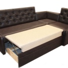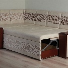 تشمل مزايا نظام الطي هذا سهولة طي الهيكل. حتى عند فتحها ، لا تشغل هذه الأريكة مساحة كبيرة. صوفا زاوية من هذا النوع تكتمل أيضًا بدرج واسع إلى حد ما يمكنك من خلاله تخزين الكتان وجميع متعلقاتك. هذا جيد جدا لشقة صغيرة. ميزة إضافية لهذا الأثاث هي أنه يمكن إصلاح سرير الأريكة بسهولة..