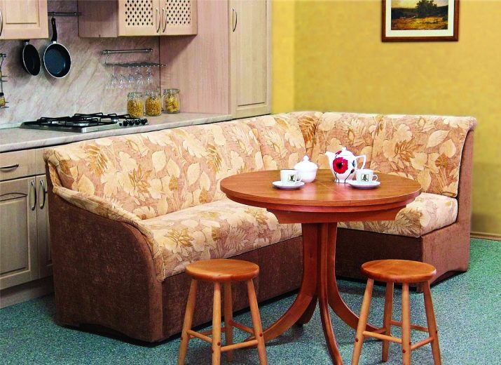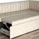 أريكة النوم صغيرة الحجم. هذا يعني أنه يمكن تثبيته حتى في المطبخ الصغير. ستكمل زاوية التحويل الناعمة تمامًا غرفة صغيرة في مبنى خروتشوف واستوديو.