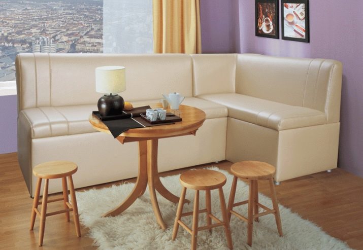 يوصي خبراء التصميم باختيار الأرائك للمطابخ المقاومة لجميع أنواع التلف. من الأفضل ترك المواد الغريبة والمكلفة لغرف المعيشة وغرف النوم..