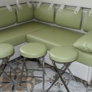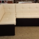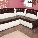 غالبًا ما تكون الزوايا المثبتة في المطبخ مغطاة بجلد صديق للبيئة عالي الجودة.. تتكون هذه المادة من نسيج قطني سميك مغطى بفيلم خاص في الأعلى. إنه جلدي يعتبر أحد أفضل الخيارات لتزيين أريكة المطبخ..