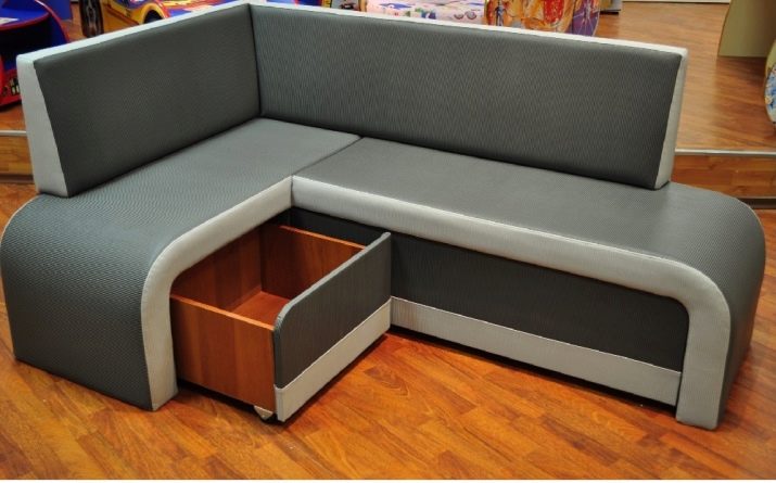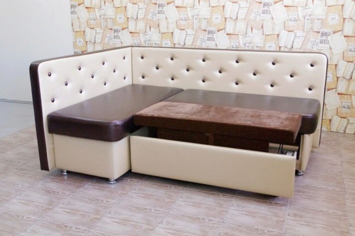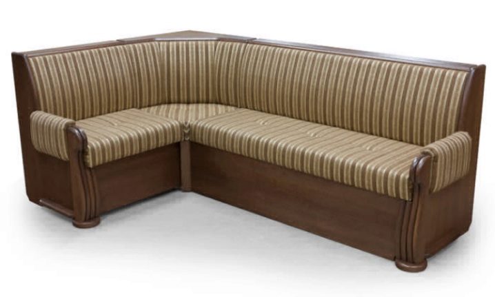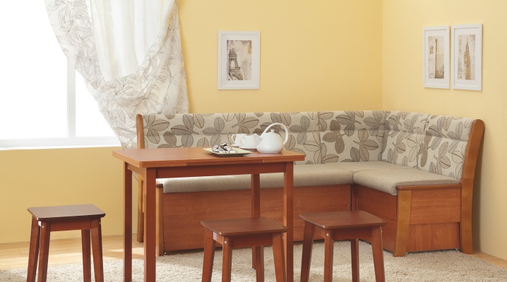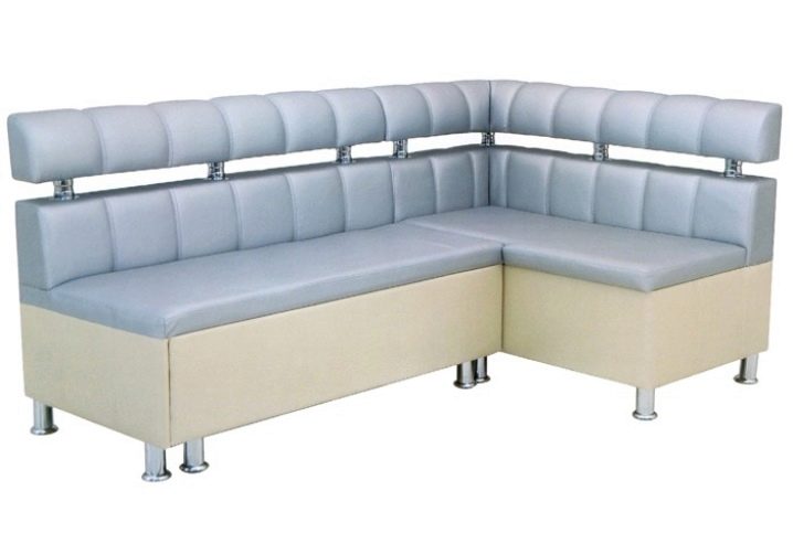 ميزة إضافية هي أن أرائك المطبخ ليست مثبتة مباشرة على الأرض ، ولكن على أرجل خاصة. هذا يعني أنه يمكنك تنظيف الأرضية بأمان أسفل الأريكة ، ولن يتراكم الغبار في هذه المنطقة التي يصعب الوصول إليها..