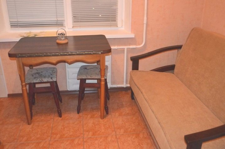 هذا خيار شائع آخر للمطابخ الصغيرة. لكن شراء مثل هذا الأثاث موصى به فقط لأولئك الذين يخططون لاستخدامه للنوم نادرًا جدًا..
