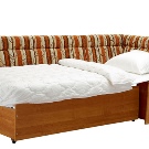 هذا التصميم مريح للغاية. صُنعت الأريكة التي تحتوي على سرير بظهر صغير ومساند للذراعين كبيرة إلى حد ما. في كثير من الأحيان ، يتم استبدال ظهر الأريكة بوسائد مدمجة قابلة للإزالة. يتم تثبيتها مباشرة على قاعدة الأريكة – أي على إطار من الجلد أو القماش. أيضًا ، قد لا يحتوي هذا النوع من الأرائك على مساند للذراعين. لكن الخيار الأفضل هو عندما تكون قابلة للإزالة..