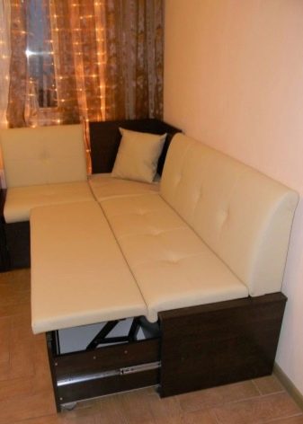 تصميم التحويل عملي ومتعدد الوظائف ، حيث يمكن استخدامه كمكان للنوم. أفضل آلية للمطبخ هي الدلفين. في هذا النموذج ، يكون السرير تحت المقعد ويتم سحبه بحركة خفيفة. تعتبر الأريكة التي تحتوي على مساحة تخزين للأشياء وكتب الطهي والأشياء الصغيرة الأخرى تصميمًا عمليًا. آلية قابلة للطي ، قابلة للطي ، نموذج بدون مساند للذراعين أو على الساقين – خيار جميل ومضغوط.