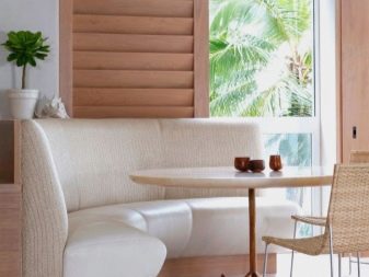 هناك الكثير من النماذج الحديثة والمثيرة للاهتمام لأرائك المطبخ. يوصي المصممون بالاهتمام بالهياكل المعيارية التي يتم تجميعها من عدة أجزاء واكتساب الشكل اللازم عند تحريك العناصر المكونة. أريكة نصف دائرية ناعمة ، منزلقة ، مستديرة ، على شكل حرف U ، نصف قطر ، محول ، “eurobook” ، “أكورديون” – أحد أكثر الأشكال إحكاما وعملية. الموديلات ذات المظهر الخلفي العالي مناسبة للداخل الكلاسيكي.