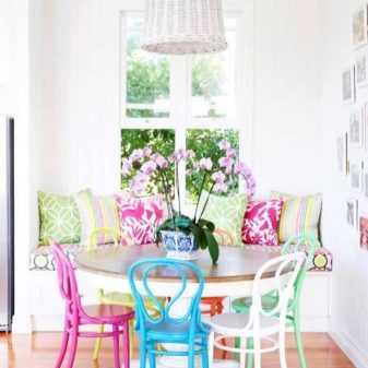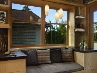حل مثير للاهتمام هو البناء الناعم مع عداد قضبان. الحلول غير العادية والأنيقة في التصميم الداخلي الحديث هي ما يمنح المساحة أصالة وتفردًا. ينصح العديد من المصممين بوضع مجموعات لتناول الطعام بالقرب من النافذة ومنطقة الجلوس على حافة النافذة إذا كانت واسعة. إذا وضعت هيكلًا ناعمًا بجوار النافذة ، يمكنك الاستمتاع بالمنظر الجميل أثناء تناول الطعام. هذا صحيح إذا كانت المناظر الطبيعية الجميلة مرئية من نافذة كبيرة..