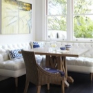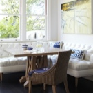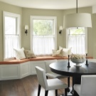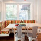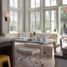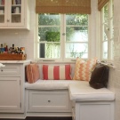 نافذة الخليج عبارة عن هيكل مصنوع خصيصًا لملء مكان فارغ أسفل النافذة. يمكن أن تكون مستطيلة أو نصف دائرية أو غير قياسية. بمساعدة أريكة نافذة الخليج ، تمتلئ المساحة الخالية قدر الإمكان. اختر مواد التنجيد لهذا النموذج في ظل خفيف ودقيق. إذا تم الجمع بين المطبخ وشرفة ، فإن أفضل خيار لوضع الأثاث المنجد مع طاولة هو بالقرب من النافذة. سيخلق هذا الترتيب منطقة طعام مريحة..