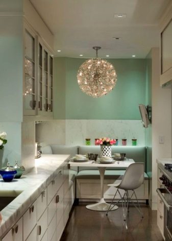 تصميم التحويل عملي ومتعدد الوظائف ، حيث يمكن استخدامه كمكان للنوم. أفضل آلية للمطبخ هي الدلفين. في هذا النموذج ، يكون السرير تحت المقعد ويتم سحبه بحركة خفيفة. تعتبر الأريكة التي تحتوي على مساحة تخزين للأشياء وكتب الطهي والأشياء الصغيرة الأخرى تصميمًا عمليًا. آلية قابلة للطي ، قابلة للطي ، نموذج بدون مساند للذراعين أو على الساقين – خيار جميل ومضغوط.