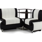 بالإضافة إلى تحسين المساحة ، تتمثل الميزة في القدرة على تحديد جدول من أي شكل ، بما في ذلك سطح الطاولة المستطيل الأكثر شيوعًا. أيضًا ، يكمل عدد من الشركات المصنعة المجموعة بطاولتهم الخاصة والعديد من المقاعد أو الكراسي المنجدة ، والتي تتناسب مع التنجيد.