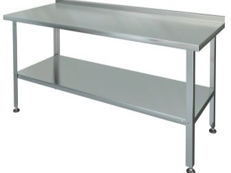 - معدن. عادة ما يتم تثبيت الطاولات المطلية بالمعدن في مطابخ تقديم الطعام ، لأنها الأكثر صحية للاستخدام – فهي سهلة التنظيف ، ولا تنمو البكتيريا عليها ؛
