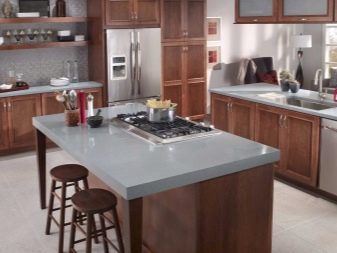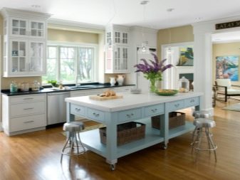 يجب أن يتناسب سطح المكتب بشكل متناغم مع المساحة الداخلية العامة للمطبخ. إذا تم تضمينه في محرف ، كقاعدة عامة ، يتم تصنيعه في النمط العام مع بقية العناصر. ولكن إذا قمت بشرائه بشكل منفصل أو صنعته بنفسك ، فيمكنك اختيار حل غير قياسي.