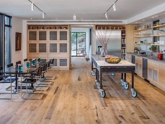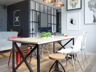 على سبيل المثال ، طاولة “خشنة” مصنوعة من ألواح خشبية موضوعة على حاملات تناسب المطبخ المصمم على الطراز الريفي. لعشاق التصميم الصديق للبيئة ، فإن الأثاث المصنوع من الخيزران مناسب ، والنسخة الوحشية ذات الأرجل الحديدية السميكة والحواف الحديدية ستظهر بشكل عضوي في الجزء العلوي من الداخل.