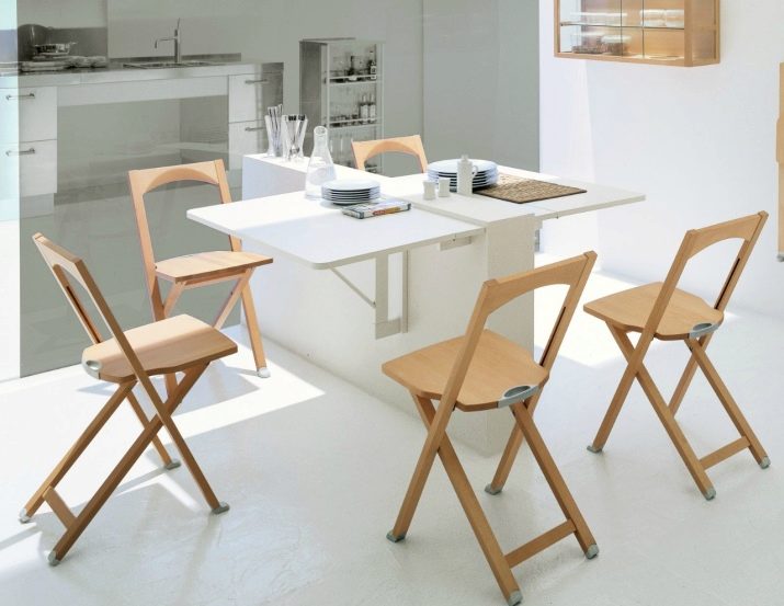تعد الطاولات والطاولات القابلة للطي خيارًا للمطبخ ، حيث يتم استخدامها كقطعة أثاث منفصلة ويمكن إزالتها في أي وقت ، مما يوفر مساحة ، على سبيل المثال ، للعديد من الأشخاص الذين يعملون في نفس الوقت. يُنصح بتكميله بكراسي قابلة للطي. هناك عروض لتصميمات وأشكال مختلفة للبيع – دائرية ، مربعة ، بيضاوية ، وحتى مثلثة.