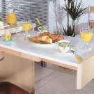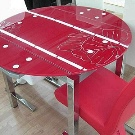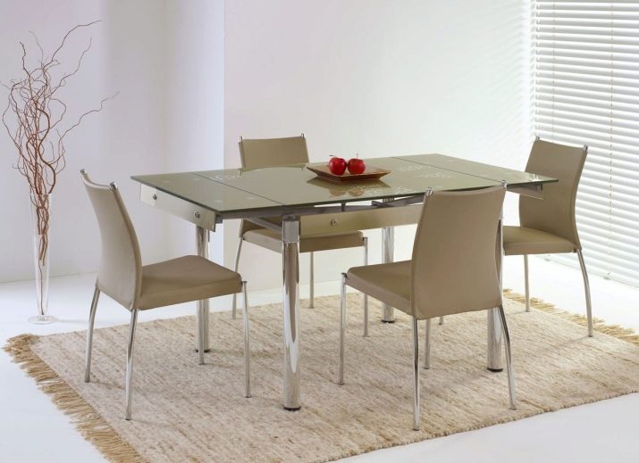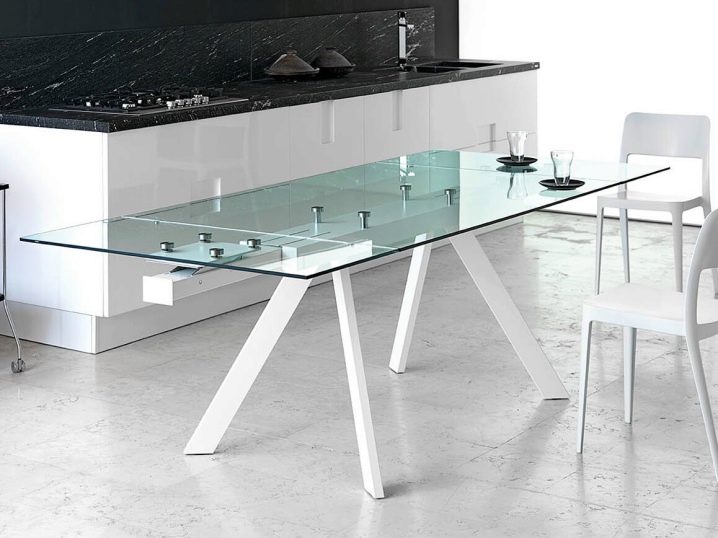طريقة مختلفة نوعيا هي طاولة قابلة للطي مع سطح زجاجي. لديه بالفعل الكثير من المزايا: