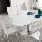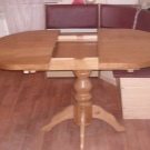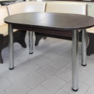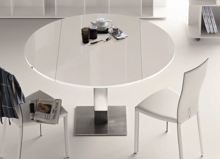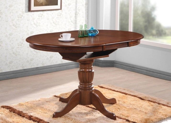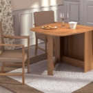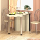 بالمناسبة ، في البديل مع هذه الطاولات ، يُنصح بشراء قطعة أثاث مستديرة أو بيضاوية. على عكس الجدول غير القابل للطي ، يمكن وضع مثل هذا الجدول على الحائط ، بعد أن قام بطي جداره الجانبي مسبقًا واستلم مخروطًا مقطوعًا. يتم طيها على طول الجانب الأكبر أو الأصغر ، الشيء الرئيسي بالنسبة لك هو أن تقرر وتختار ما تحتاجه.