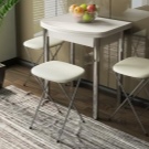 في الداخل ، تعد الطاولات الصغيرة القابلة للطي لمطبخ صغير عناصر وظيفية يمكن استخدامها للغرض المقصود منها وكطاولات إضافية في المطبخ ذي الحجم العادي. تقدم المتاجر اليوم مجموعة واسعة منها. باتباع نصيحتنا ، ستختار بالتأكيد طاولتك عالية الجودة التي ستكون ملائمة للاستخدام ولن تشغل مساحة كبيرة في مطبخ صغير..