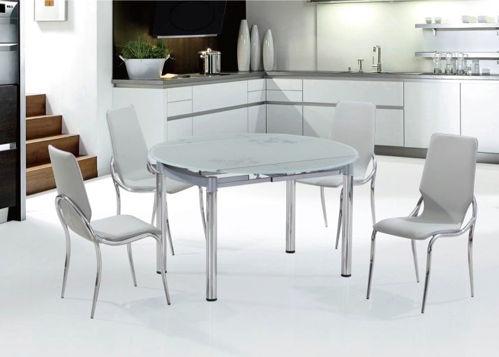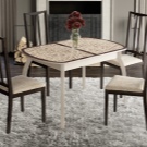 ثالثًا ، حدد شكل وتصميم الجدول. يفرض سطح الطاولة المستدير والبيضاوي قيودًا على الاستخدام في الداخل ، بينما يجب أن يسمح السطح المستطيل لشخص واحد على الأقل بأخذ مكان من النهاية. يجب طي سطح الطاولة مرتين على الأقل ، وهذا سيسمح لنصف أفراد الأسرة بتناول الطعام بشكل مريح دون تحريك الطاولة بعيدًا.
