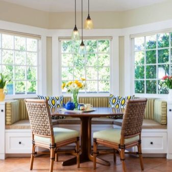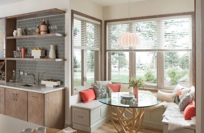 العنصر الأخير المهم عند اختيار ركن المطبخ لنافذة الخليج هو الملحقات. بادئ ذي بدء ، هذه وسائد يمكنك توفيرها عند الطلب أو يمكنك تزيين الأريكة بنفسك بها ، على سبيل المثال ، عن طريق خياطةها بنفسك ، مما سيضيف المزيد من الراحة إلى مطبخك..