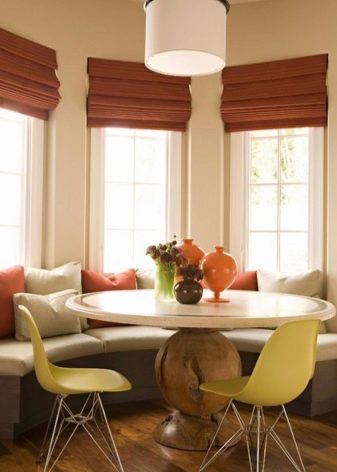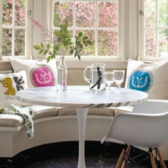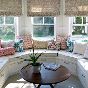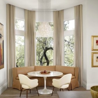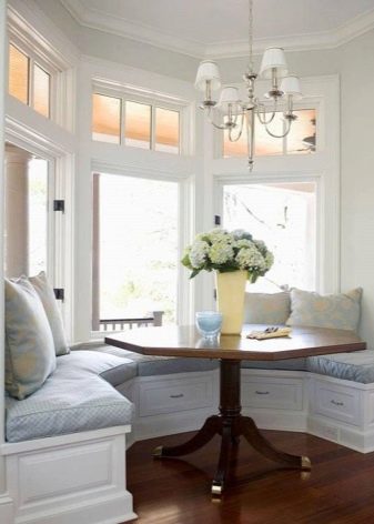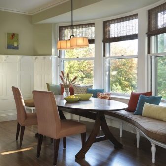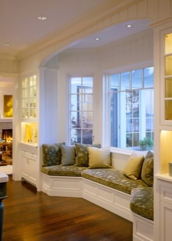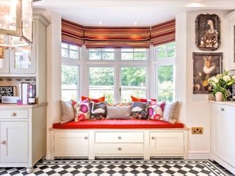 ما هي أفضل طريقة لشغل نافذة الخليج؟ بالطبع ، إذا كان في غرفة المعيشة ، فيمكنك وضع الزهور أو أي عناصر داخلية مزخرفة هناك ، ولكن إذا كان في المطبخ ، فإن أفضل حل هو أريكة نافذة كبيرة. يمكن شراؤها من المتجر أو طلبها. ومع ذلك ، نظرًا لاختلاف أحجام نافذة الخليج ، فمن الأفضل إعدادها حسب الطلب. علاوة على ذلك ، في هذه الحالة سيكون من الممكن مراعاة جميع رغباتك..