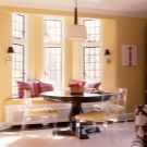 نصيحة صغيرة عند اختيار الزاوية: تذكر أن النافذة الكبيرة تسمح بدخول المزيد من الضوء إلى الغرفة ، لذلك لجعل مكان تناول الطعام الخاص بك أكثر إشراقًا ، اختر مواد التنجيد بألوان فاتحة ودافئة.