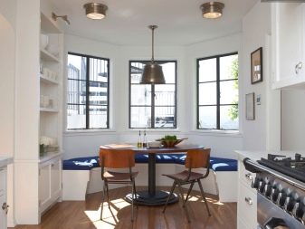 في معظم الحالات ، تصنع جميع زوايا الأثاث على شكل نافذة كبيرة ، أي نصف دائرة. ومع ذلك ، فإن أرائك المطبخ بها الكثير من الاختلافات عن الأرائك المصممة لغرف المعيشة. هناك العديد من الخيارات المختلفة لهذه الزوايا ، اعتمادًا على التكوين والأبعاد والوظائف والتصميم والمواد واللون والملحقات..