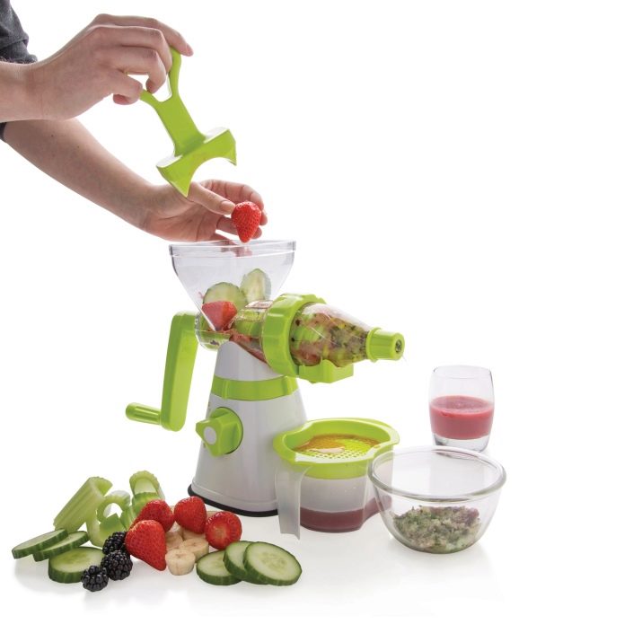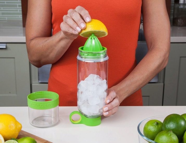 عند انتهاء العملية ، يتم شطف الجهاز بالماء الجاري. هذا النموذج مناسب جدًا للاستخدام عند الحاجة إلى القليل جدًا من العصير ، على سبيل المثال ، لصنع كوكتيل أو لتتبيل السلطة..
