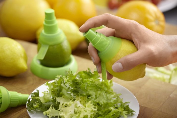 تم تصميم هذا الجهاز لنفس الغرض كأنه محمول. في بداية الاستخدام ، تتم إزالة قطعة صغيرة من قشر الليمون ، ويتم إدخال أنبوب لولبي في الحفرة الناتجة على عمق أكبر قدر ممكن. الآن ، إذا ضغطت على رأس الرش الموجود أعلى الجهاز ، فسيتم رش عصير الليمون من البخاخ.