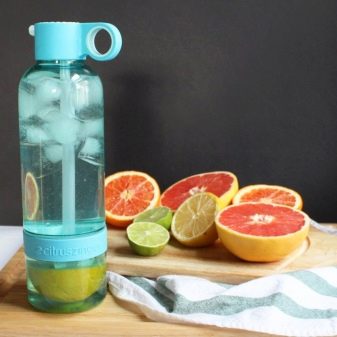 الموديل البلاستيكي Citrus Zinger (ألمانيا) مضغوط وخفيف الوزن ، يمكنك اصطحابه معك ، على سبيل المثال ، للتدريب أو للنزهة ، وقد تحتاجه في الرحلات. مادة تصنيع هذا التصميم هي بلاستيك من الدرجة الغذائية مع سيليكون. في الرقبة والجزء السفلي – اتصال عن طريق خيط. تصميم جذاب للغاية.