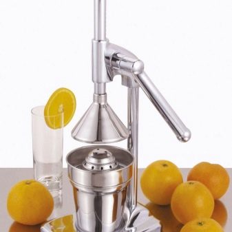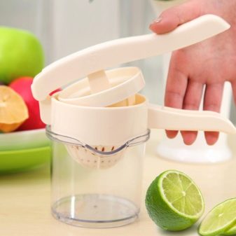 بمعنى آخر ، تسمى هذه العصارة بالضغط الصغير ، والتي يمكن أن تصنع بسرعة عصيرًا طازجًا من شرائح الليمون أو البرتقال أو الجريب فروت. هذا التصميم يشبه ذلك الذي يطحن الثوم. هنا ، تؤخذ نصف الثمرة وتوضع بين لوحين من المعدن أو البلاستيك. يتم تحرير العصير ويتدفق خلال العطلة في وعاء مُجهز.