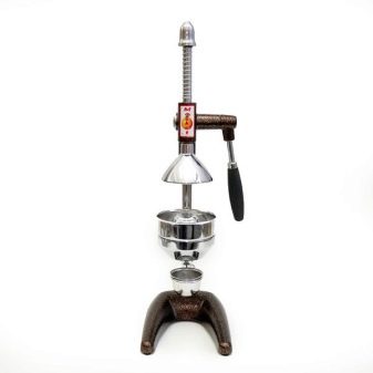 للبيع عصارات يدوية بالكامل ونوع من الآلية اليدوية – عصارة عصارة الحمضيات. هذا النموذج عبارة عن مخروط وجهاز يتم الضغط على الجنين به. عصر العصير بهذه الطريقة ، لن تضطر إلى بذل الكثير من الجهد ، وسيتم عصر العصير بنسبة 100٪ ، مما يترك بشرة شبه جافة من البرتقال..