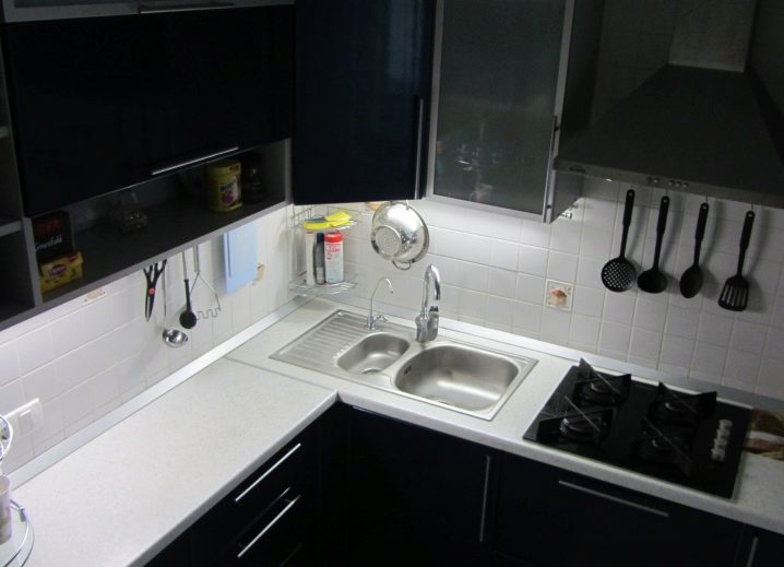إذا رغبت في ذلك ، يمكن تركيب مصباح منفصل على حجر الرصيف هذا. هذا صحيح بشكل خاص مؤخرًا ، لأنه غالبًا ما يحترق الضوء فوق سطح العمل فقط. لذلك ، من الممكن تمامًا تثبيت جهاز إضاءة خاص مقاوم للماء بجوار الحوض..