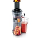 النوع الثاني يشبه في المظهر مفرمة اللحم ، وتحدث العملية نفسها باستخدام ضغط اللب الخلفي. عند عصر العصير ، يعمل مبدأ الضغط البطيء. بفضل هذا المبدأ ، يمكن الحصول على العصير ليس فقط من الفاكهة ، ولكن أيضًا من الأوراق والأعشاب. مقارنة بالنوع الأول ، يمكن ملاحظة أنه عند استخدام عصارة البريمة ، يكون احتمال الإصابة أقل. وتجدر الإشارة أيضًا إلى وظيفة التنظيف الذاتي الموجودة بالداخل ، والتي تتيح لك غسل الجهاز بشكل أسرع..