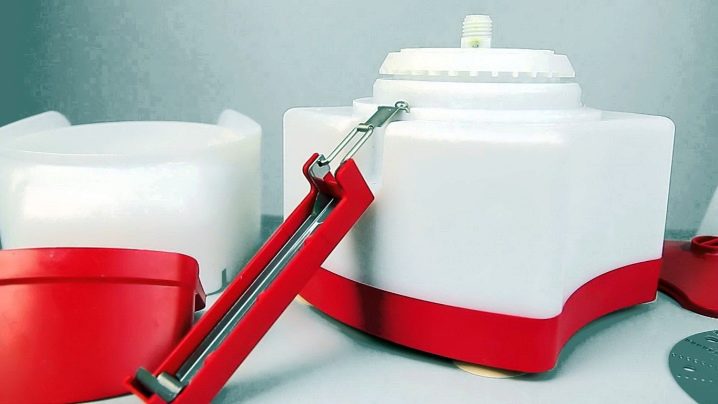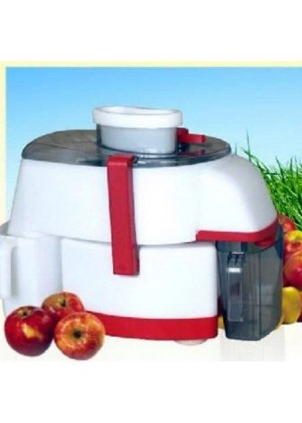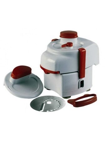 أما بالنسبة للعصارة ، فإن ميزتها الرئيسية هي جاك كابس للعصر ، وهي مصنوعة من الستانلس ستيل مع قاعدة معدنية. مبدأ عملها هو أنه أولاً ، يتم وضع أي فواكه مقطعة أو حتى خضروات في السلة ، ويتم وضع طبق خاص في الأعلى يتم تثبيته في الجهاز. ثم يعمل جاك ، والذي يرتكز على القاعدة ، ويدفعها لأعلى ، ويتم ضغط الثمار بالداخل بمساعدة هذا ، ونحصل على العصير.