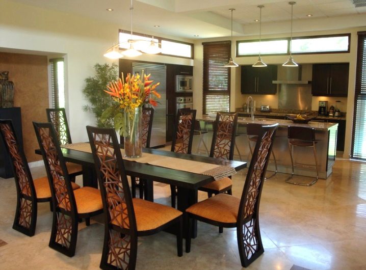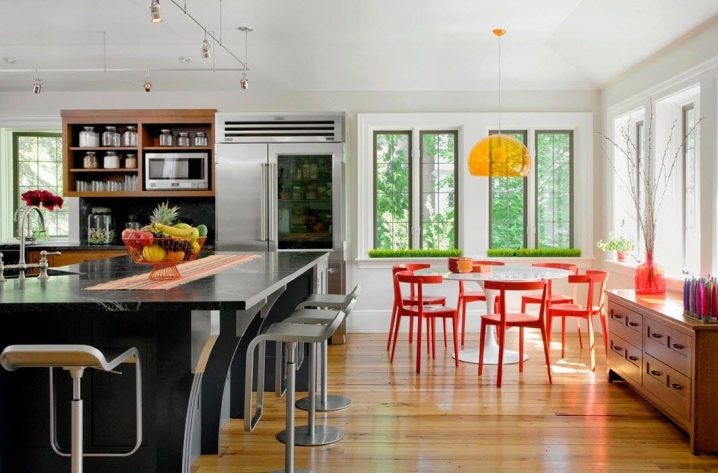 سيساعد لون الكراسي التي تختارها في إبراز الجزء الداخلي من المطبخ بنجاح. لذلك ، يمثل اللون الأرجواني الحلول غير القياسية. ستكون الكراسي البرتقالية بمثابة مصدر غير مرئي للدفء والطاقة بالنسبة لك. ستمنحك النماذج الصفراء شعورًا بالخفة. ستعبر الكراسي الحمراء عن حيويتك. تعبر الألوان السوداء للأثاث عن تقشف الأسلوب. الأزرق – يرمز إلى الهدوء والصفاء.