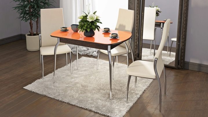 هناك أيضًا خيارات لا تحتوي على أي لون ، أي أنها شفافة تمامًا. إنها مناسبة لمطبخ صغير. لعشاق الطراز الحديث ، فإن كراسي الكروم هي الأنسب. ستضيف كراسي الكروم التقشف والحياد إلى الخارج ولمطبخك.