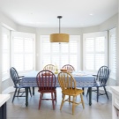 نماذج الألوان الأكثر سطوعًا ، والتي تتوفر في عدة درجات في وقت واحد ، ستضفي الحيوية على مطبخك بألوان متنوعة. مثال على ذلك سيكون الألوان الفيروزية والبيج للكراسي. إذا كان مطبخك مصنوعًا بأسلوب قاتم نوعًا ما ، فإن الكراسي ذات اللون ينجي هي الأنسب.