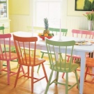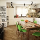 نماذج الألوان الأكثر سطوعًا ، والتي تتوفر في عدة درجات في وقت واحد ، ستضفي الحيوية على مطبخك بألوان متنوعة. مثال على ذلك سيكون الألوان الفيروزية والبيج للكراسي. إذا كان مطبخك مصنوعًا بأسلوب قاتم نوعًا ما ، فإن الكراسي ذات اللون ينجي هي الأنسب.