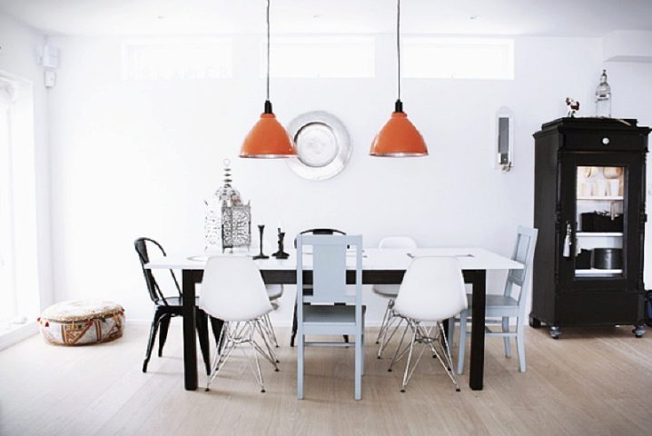 سيساعد لون الكراسي التي تختارها في إبراز الجزء الداخلي من المطبخ بنجاح. لذلك ، يمثل اللون الأرجواني الحلول غير القياسية. ستكون الكراسي البرتقالية بمثابة مصدر غير مرئي للدفء والطاقة بالنسبة لك. ستمنحك النماذج الصفراء شعورًا بالخفة. ستعبر الكراسي الحمراء عن حيويتك. تعبر الألوان السوداء للأثاث عن تقشف الأسلوب. الأزرق – يرمز إلى الهدوء والصفاء.