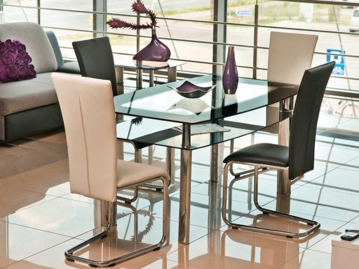 هناك أيضًا خيارات لا تحتوي على أي لون ، أي أنها شفافة تمامًا. إنها مناسبة لمطبخ صغير. لعشاق الطراز الحديث ، فإن كراسي الكروم هي الأنسب. ستضيف كراسي الكروم التقشف والحياد إلى الخارج ولمطبخك.