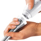 من حيث جودة العمل ، يتمتع الخلاط اليدوي Braun Multiquick 5 بأداء ممتاز. تم منح طراز MQ 5045 WH Aperitive بتصميم مقتضب ، و “ساق” مريحة ، وجزء غمر غير قابل للصدأ. الجهاز يعمل بقوة 750 وات. الأهم من ذلك كله ، يحب المستخدمون التحكم الواضح والمريح في المنتج. يمكنك تغيير سرعة دوران السكاكين بشكل مستقل ، وتحديد الوضع (النبض ، التوربو) ، لكن لا تقاطع الطهي.