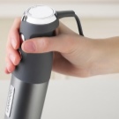 نظرًا لأنه يتعين عليك الاحتفاظ بالخلاط اليدوي في يدك طوال الوقت دون تحرير زر البدء ، فقد تتعب. لهذا السبب يجب ألا تختبر الجهاز بكميات هائلة من الطعام. هذا لن يقصر وقتك في أقل تقدير. في حالة قيامك بإعداد الطاولة لعدد كبير من الضيوف ، وترتيب وجبة حقيقية ، فمن الأفضل استخدام نموذج ثابت أو مدمج.