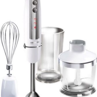 ميزة الجهاز الغاطس هي وظيفته الواسعة. تكمل الشركة المصنعة هذه المنتجات بمجموعة متنوعة من المرفقات لأغراض محددة. لذلك لن يكون من الصعب عليك تحضير كافيار الاسكواش وكريمة الزبدة والمربى ومشروب لذيذ..