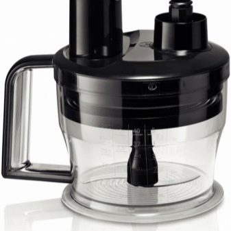 هناك ثلاثة أنواع رئيسية من المرفقات. العنصر الرئيسي هو “المدقة” المدرجة في العبوة. تم تجهيز هذا الجزء بسكاكين معدنية حادة تساعد في طحن الطعام بالقوام المطلوب (حساء سميك ، عصيدة ، موس ، قشدة بالكريمة ، إلخ)..