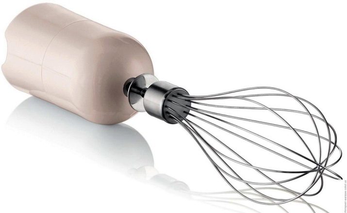 تم تصميم الخفاقة لتعمل كخلاط وتستخدم لصنع كريمات البروتين ، وكذلك لخلط الكوكتيلات. بالإضافة إلى ذلك ، تحتوي هذه الفوهة على كوب قياس متخصص ، وهي مريحة لجلد مجموعة متنوعة من السوائل فيها. سيساعدك هذا الجهاز في عجن عجين الفطائر بسهولة أو إرضاء المنزل بأجمل عجة البيض. ستساعدك قضبان الفولاذ المقاوم للصدأ على تقطيع الفواكه اللينة أو الخضار واستخدامها في الهريس.