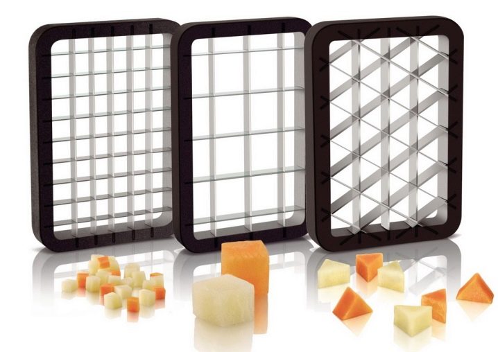 يستخدم هذا العنصر لتقطيع الخضار والفواكه. يتكون من سكين شبكي يقطع المكونات عموديًا. في المنطقة الأفقية ، يتم تنفيذ هذه الوظيفة بواسطة سكين يدور. المكعبات متساوية بنفس الحجم. إنهم قادرون على تزيين أي سلطة ، وكذلك تشكيل طبق أصلي لطاولة احتفالية..