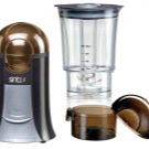 هذا الخلاط ليس مريحًا جدًا. من أجل طحن حبوب القهوة فيه ، سوف تحتاج إلى التقاط وعاء أو كوب خاص بغطاء مغلق. سيسمح لك ذلك بطحن القهوة بهدوء وتحويلها إلى دقيق ناعم دون خوف من انسكاب بعض المسحوق..