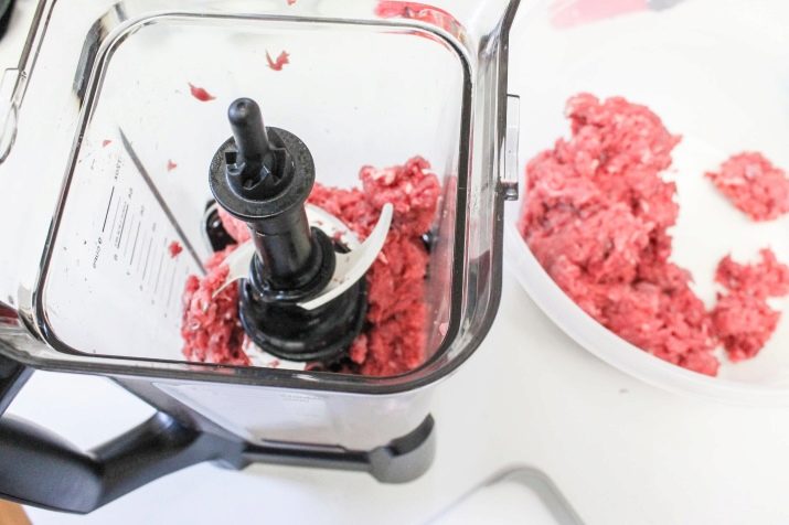 الخلاطات الغاطسة مفضلة أكثر وأسهل في الاستخدام لكثير من الناس. كل ما هو مطلوب هو وضع اللحم المحضر في الخلاط ، وخفض السكين هناك وتشغيل الجهاز. في دقيقتين فقط ، سيكون اللحم المفروم الرائع لشرائح ذات مذاق ممتاز جاهزًا. لكن باستخدام هذا الجهاز ، من الأفضل طحن اللحوم في أجزاء صغيرة ، لتجنب الحصول على كتل كبيرة من اللحم المفروم..