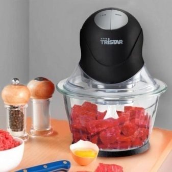 في الواقع ، النماذج المجمعة عبارة عن معالجات طعام مصغرة ولديها وعاء خاص وسكين في مجموعتها ، وهي ضرورية لصنع اللحم المفروم. في الوقت نفسه ، يمكن في كثير من الأحيان ضبط حجم الطحن باستخدام مجموعة متنوعة من الملحقات..